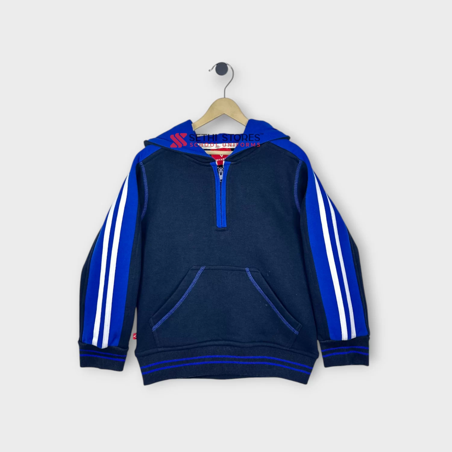 The Srijan School New Winter Track Suits in Navy Blue with Blue contrast offer comfort and style for the child. Crafted from high-quality materials, these track suits are perfect for the winter uniform of schools. Tracksuit for KG, Navy blue with Blue Contrast for the Srijan School. This set comprises Tracksuit upper, Tracksuit lower and socks for KG students.