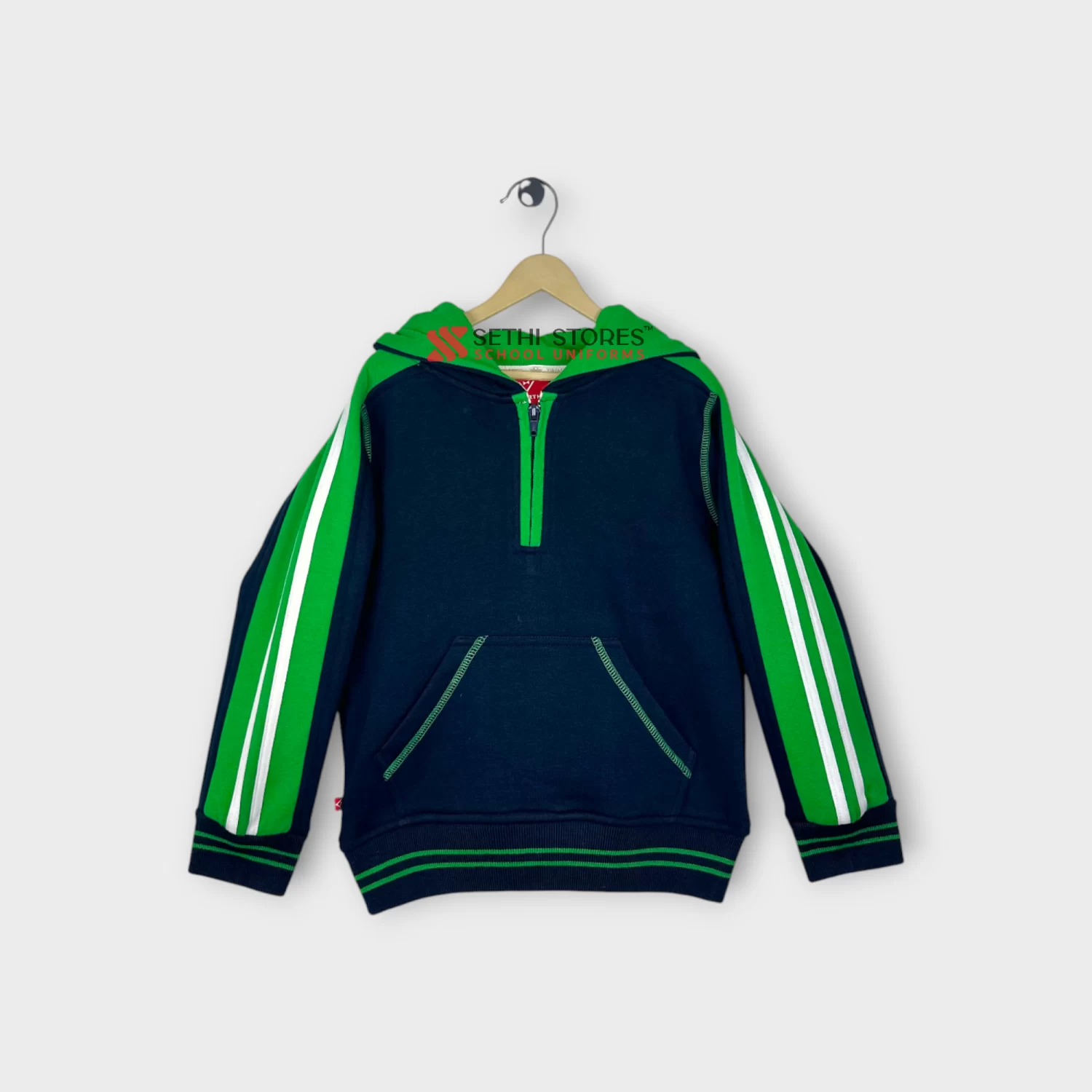 The Srijan School New Winter Track Suits in Navy Blue with Green contrast offer comfort and style for the child. Crafted from high-quality materials, these track suits are perfect for the winter uniform of schools. With their soft fabric and perfect fit, they ensure all-day comfort. Tracksuit for Nursery, Navy blue with Green Contrast for the Srijan School. This set comprises Tracksuit upper, Tracksuit lower and socks for KG students.